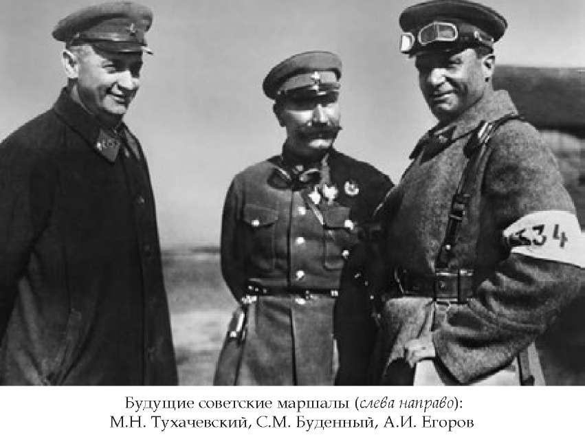 Так у автора. Маршал Советского Союза М.Н. Тухачевский был осужден Специальным судебным присутствием Верховного суда СССР и расстрелян 12 августа 1937 г. Маршал А.И. Егоров в состав суда не входил. Весной 1935 г. Тухачевский был заместителем наркома обороны. Маршал А.И. Егоров был осужден Военной коллегией Верховного суда СССР и расстрелян 23 февраля 1939 г. Весной 1935 г. Егоров являлся Начальником штаба РККА. С.М. Буденный – весной 1935 г. инспектор кавалерии РККА. Вместе с Тухачевским, Егоровым, а также К.Е. Ворошиловым и В.К. Блюхером в ноябре 1935 г. получил звание маршала Советского Союза. Был членом судебных коллегий на процессах Тухачевского и Егорова. Умер в 1973 г.