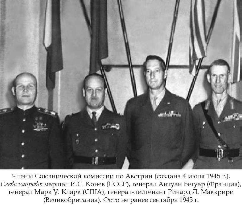 [Закрыть]. Генерал и маршал отдали честь, и я тоже. После того как оркестр закончил, наступила пауза. Рука генерала Кларка начала опускаться от козырька фуражки. Со стороны я видел, что он скосил глаз на Конева, который продолжал отдавать честь. Рука Кларка быстро вернулась к козырьку. Пауза продолжалась, и теперь рука Конева начала опускаться. Он посмотрел на вытянувшегося Кларка, и его рука вернулась в исходное положение.