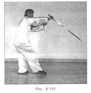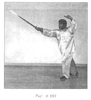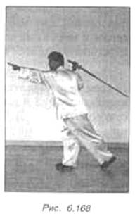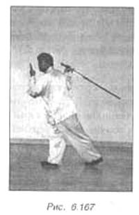 Поверните корпус и голову на юго-запад. Левый цзяньцзюэ должен находиться напротив носа. Расслабьте правую руку, и меч слегка развернется (рис. 6.167).