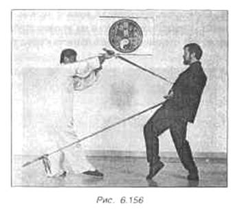 Продолжая предыдущее движение, нанесите противнику укол, направив меч параллельно его оружию (рис. 6.156). Базовыми техниками являются цы, гэ и си.