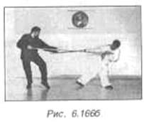 Прием продолжает предыдущее движение и рассчитан на нанесение удара по выставленной вперед руке атакующего (рис. 6.154). Базовыми техниками являются ти и гэ.