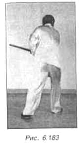 Если противник атакует сзади и сверху, уклонитесь влево и вперед и нанесите ему задний удар мечом снизу (рис. 6.173). Базовой техникой является фанцзи.
