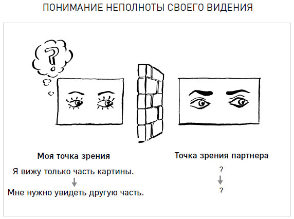 Конечно, чаще всего вы не будете знать точку зрения партнера и, следовательно, не поймете, что ассоциировать со своим стрессом. В таком случае нужно использовать другой подход: пока вы не узнаете точку зрения партнера, ваша точка зрения остается неполной, то есть у вас недостаточно данных для выводов.