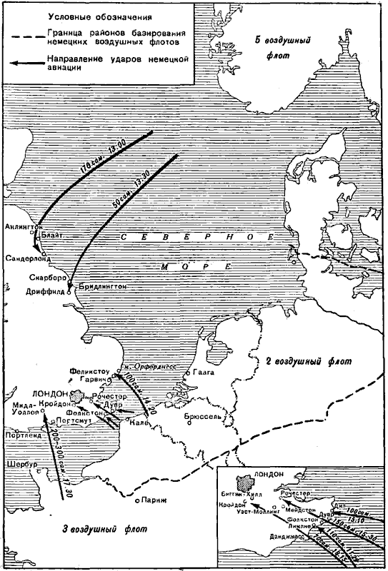 По замыслу Гитлера операция вторжения, получившая условное наименование «Морской лев», была тесно связана с активными действиями немецкой авиации. За шесть недель до вторжения немецкие ВВС должны были начать крупное воздушное наступление на Англию, в первую очередь против английских ВВС. Первые две недели этого наступления должны были определить, можно ли практически осуществить переброску немецкой армии через Ла-Манш. Планировалось, что до конца первой недели августа немецкая авиация будет заниматься разведкой и «зондированием прочности» нашей обороны, расстройством нашего судоходства и накоплением сил для нанесения решающего удара. Немцы были полностью уверены в успешном исходе операции. 11 июля генерал Штапф докладывал начальнику генерального штаба сухопутных войск генерал-полковнику Гальдеру: «Военно-воздушные силы противника будут наголову разбиты за две или четыре недели».