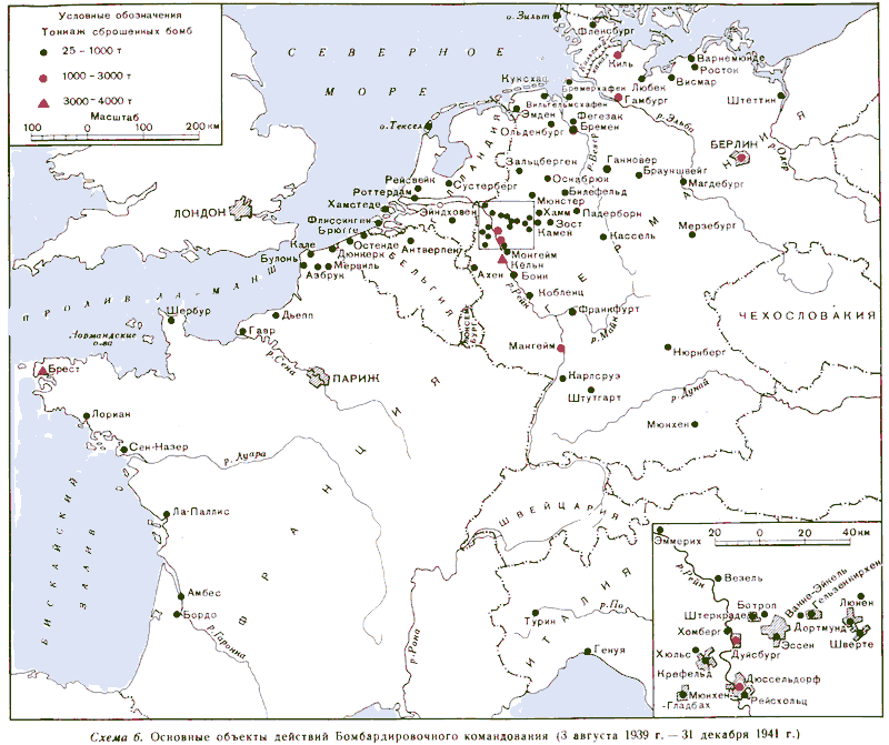 Операции против северных портов Германии оказались более успешными, чем многократные налеты на «Шарнхорст» и «Гнейзенау». На Гамбург, второй по величине город Германии, в первой половине 1941 года было совершено восемь крупных налетов, в каждом из которых принимало участие от 50 до 150 самолетов. Были полностью уничтожены или серьезно повреждены многие промышленные предприятия, среди них авиационные и машиностроительные заводы, электростанции, доки и судостроительные верфи.