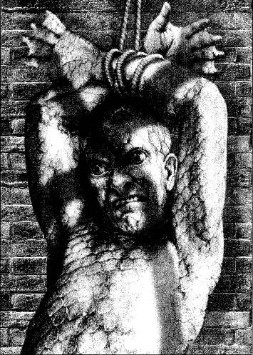 Слезы катились по его щекам, прокладывая глубокие канавки в слое грязи. И теперь я увидел, что крылось за глиняной маской. Нечто зеленоватое. Чешуйчатая кожа рептилии была явным признаком темных сил.