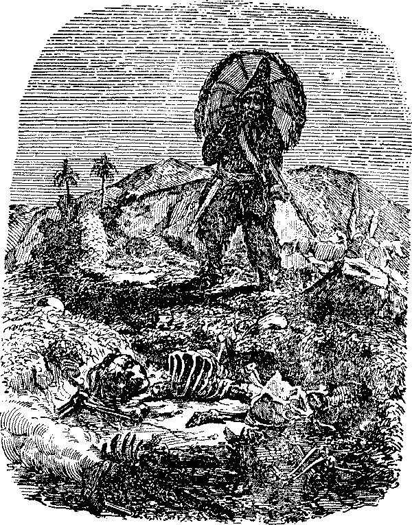 То, что я увидел, когда спустился с пригорка и подошел к берегу моря, буквально ошеломило меня. Весь берег был усеян человеческими костями; черепами, скелетами, костями рук и ног. Не могу выразить, какой ужас охватил мою душу при виде этой картины. Мне было известно, что дикие племена часто воюют между собой. Должно быть, думал я, после каждой стычки победители привозят с материка своих военнопленных на это побережье, где, по зверскому обычаю всех дикарей-людоедов, убивают и съедают их. В одном месте я заметил круглую, плотно убитую площадку, по середине которой виднелись остатки костра: здесь то, вероятно, и заседали бесчеловечные варвары, справляя свои ужасные пиры.