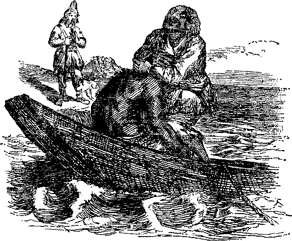 Не могу выразить, до чего я был растроган таким проявлением сыновней любви в моем друге. Нельзя было смотреть без слез на эту радость грубого дикаря при виде любимого им отца, спасенного от смерти. Но в то же время нельзя было и не смеяться нелепым выходкам, которыми выражались его радость и любовь. Раз двадцать он выскакивал из лодки и снова вскакивал в нее; то он садился подле отца и, распахнув свою куртку, прижимал его голову к своей груди, словно мать ребенка; то принимался растирать его одеревеневшие руки и ноги. Я посоветовал растереть его ромом, что ему очень помогло.