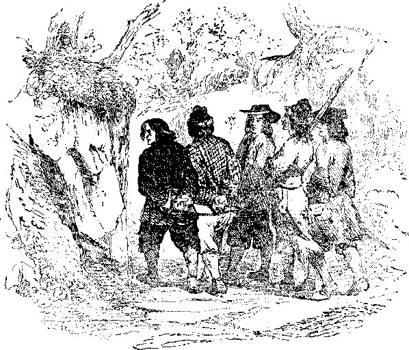 Прошло несколько часов со времени возвращения Пятницы и его товарища, а о тех не было ни слуху, ни духу. Наконец, слышим: идут. Передний кричит задним, чтоб поторопились, а задние отвечают, что скорее не могут идти, что совсем сбили себе ноги и падают от усталости. Нам было очень приятно слышать это.