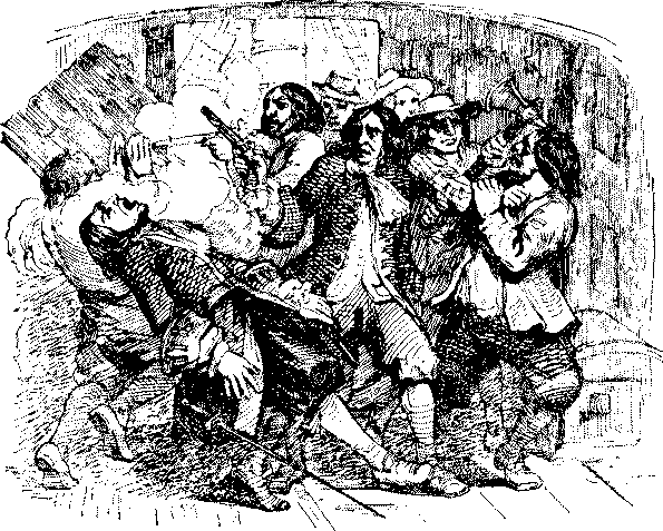 «Капитан, ради бога, смилуйтесь надо мной!» взмолился Виль Аткинс. «Чем я хуже других? Все мы одинаково виноваты». Кстати сказать, Это была ложь, потому что, когда начался бунт, Виль Аткинс первый бросился на капитана, связал ему руки и обращался с ним крайне грубо, осыпая его оскорбительной бранью. Однако, капитан сказал ему, чтоб он сдавался без всяких условий, а там уж пусть губернатор решает, жить ему или умереть. Губернатором капитан и все они величали меня.