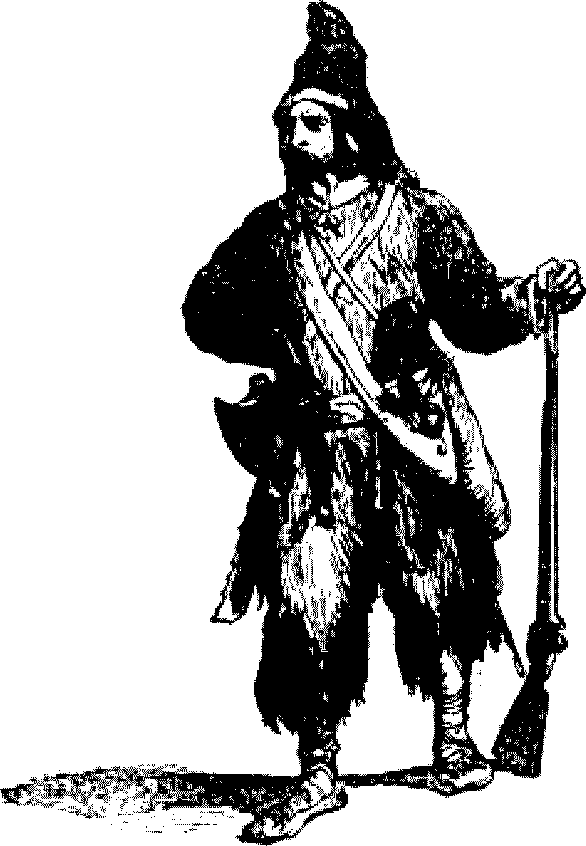 Убили мы их штук шестьдесят, и будь в лесу светло, они, наверное, поплатились бы еще дороже. Когда поле битвы было таким образом очищено, мы двинулись дальше, так как нам оставалось пройти еще около трех миль. По пути мы не раз еще слышали в лесу завывания хищников и, как нам казалось, видели, как сами они мелькали между деревьями, но снег слепил нам глаза, и разглядеть хорошенько мы не могли. Через час или около того мы добрались до городка, где решили заночевать, и нашли там всех вооруженными и в страшном переполохе; оказалось, что накануне ночью волки и несколько медведей ворвались в городок и страшно перепугали всех жителей, так что теперь они были вынуждены сторожить день и ночь, и в особенности ночью, оберегая свой скот, да и самих себя.