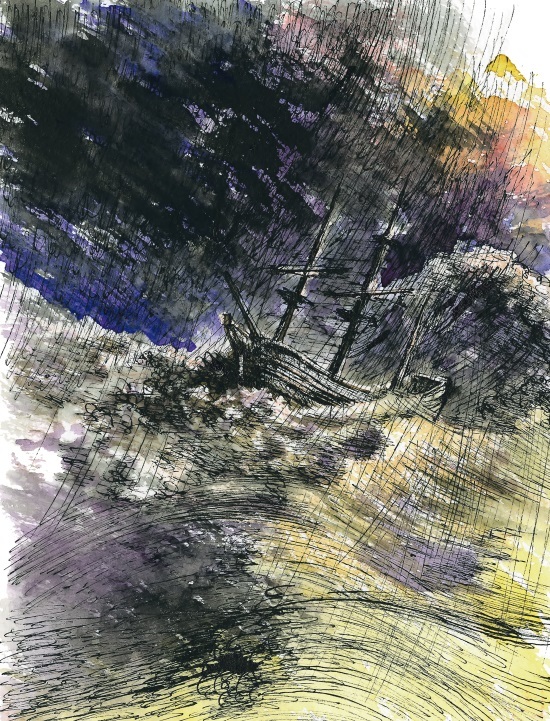 Беспомощный корабль клевал кипящую воду крохотной уточкой-нырком. Море заглатывало свою жертву, размалывая ее драконьими зубами рифов.