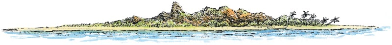 В узкой бухточке обессиленные волны влажными языками лизали усеянную водорослями песчаную косу, оставляя за собой неровную темную полосу. По песку в беспорядке были разбросаны два непарных башмака, матросский белый берет с голубым помпоном и три помятые шляпы с широкими полями. У самой полосы прибоя неподвижно лежал, распластав руки, человек в разорванной полотняной рубахе и коротких панталонах. Над прибрежными зарослями папоротников стояло марево испарений, быстро съедаемых жаром раскаленного солнца.