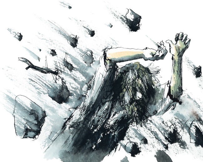 Третьего дня случилось землетрясение! Но расскажу по порядку. Я спал в своей пещере, когда мне прямо на голову посыпалась земля. Не успел я опомниться, как затрещали и рухнули два столба, поддерживавшие потолок. Остальные столбы качались и скрипели. Я выскочил наружу. Земля под ногами у меня ходила, будто палуба корабля в шторм. Деревья скрипели, высокие гибкие пальмы раскачивались и кланялись чуть ли не до земли. Три сильных толчка один за другим сотрясли все вокруг за несколько минут. Я не удержался на ногах, упал и покатился к корням кряжистого дуба. И это меня спасло. С ужасающим грохотом откололась и рухнула вниз целая вершина ближней скалы. Обломки камней упали дождем, усеяв все вокруг. Несколько острых осколков впилось прямо надо мной в ствол дуба.