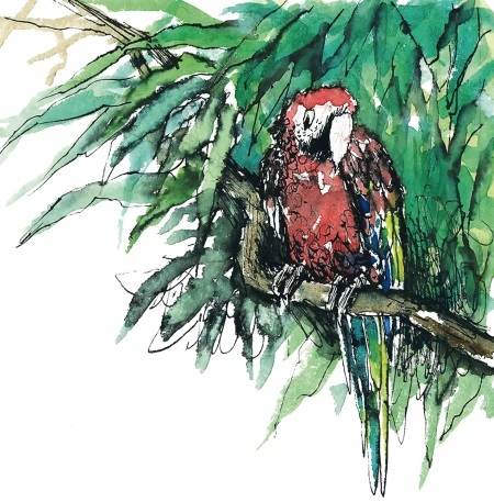 И тут Робинзон Крузо заметил в густой зелени попугая. Он топорщил яркие перья и прищелкивал костяным клювом, вновь и вновь картаво приговаривая: