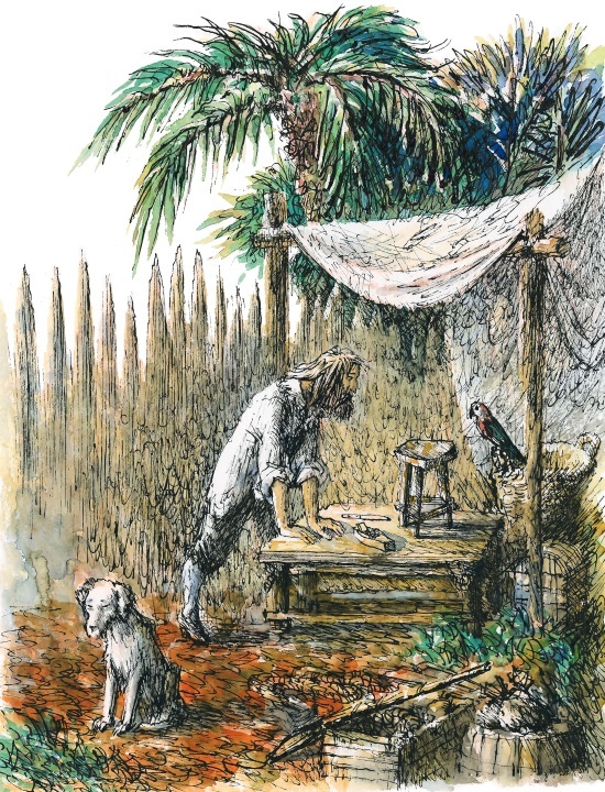 Осторожно, стараясь не спугнуть попугая, Робинзон Крузо подхватил свою сумку и поспешил обратно к своему убежищу. Кажется, у него появился новый товарищ и – о чудо, ниспосланное небом! – собеседник.