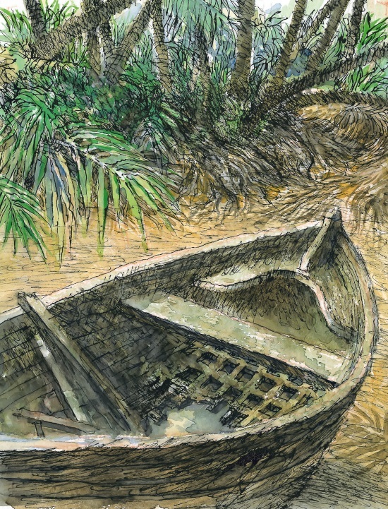 Пятница хотел выжечь внутренность колоды, как это делали дикари. Но Робинзон показал ему, как можно орудовать топором и стамеской. Смышленый Пятница быстро освоил эти плотницкие инструменты и вскоре так ловко вытесывал топором борта лодки, что Робинзон только диву давался.