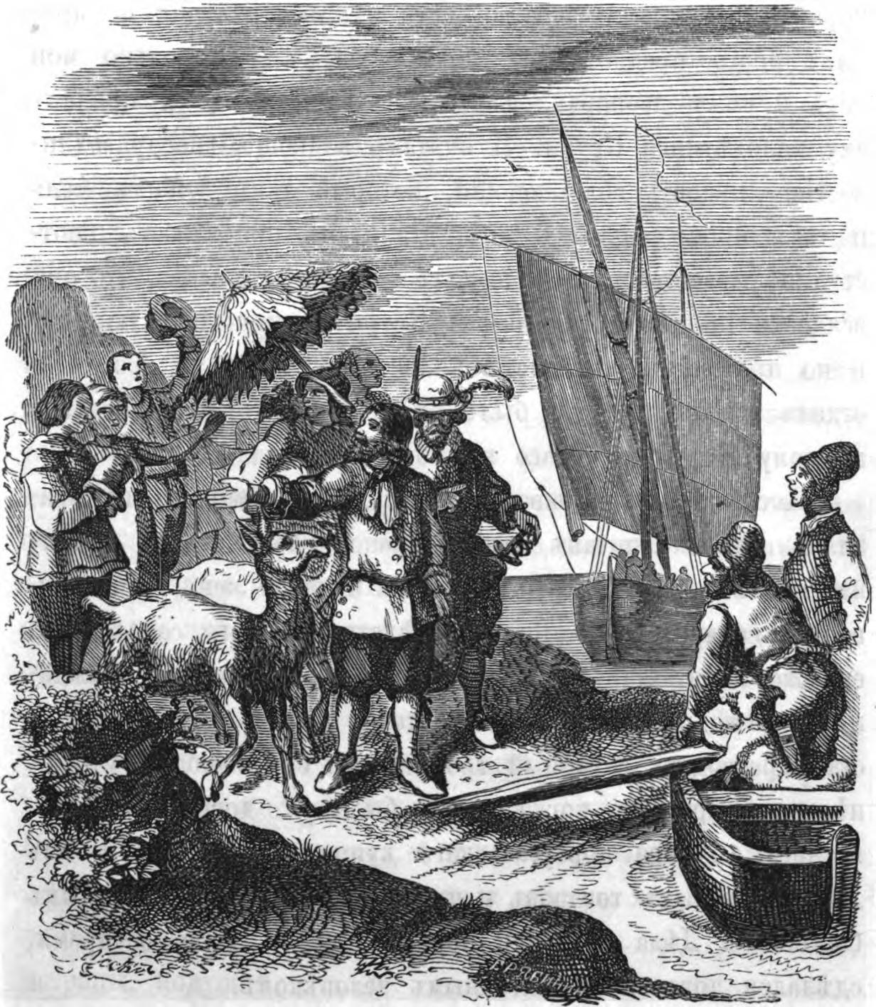 Распростившись съ моимъ добрымъ капитаномъ на берегахъ Гринеи, я занялся торговлею, и скоро распродалъ тамь привезенныя со мною вещи, которыя состояли большею частію изъ стекляруса, разныхъ мелкихъ стальныхъ и желѣзныхъ инструментовъ и тому подобныхъ предмѣтовъ. Отъ этой продажи, какъ было выше сказано, я выручилъ триста фунтовъ стерлинговъ.