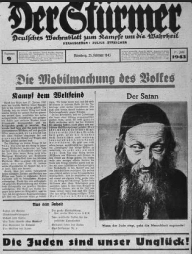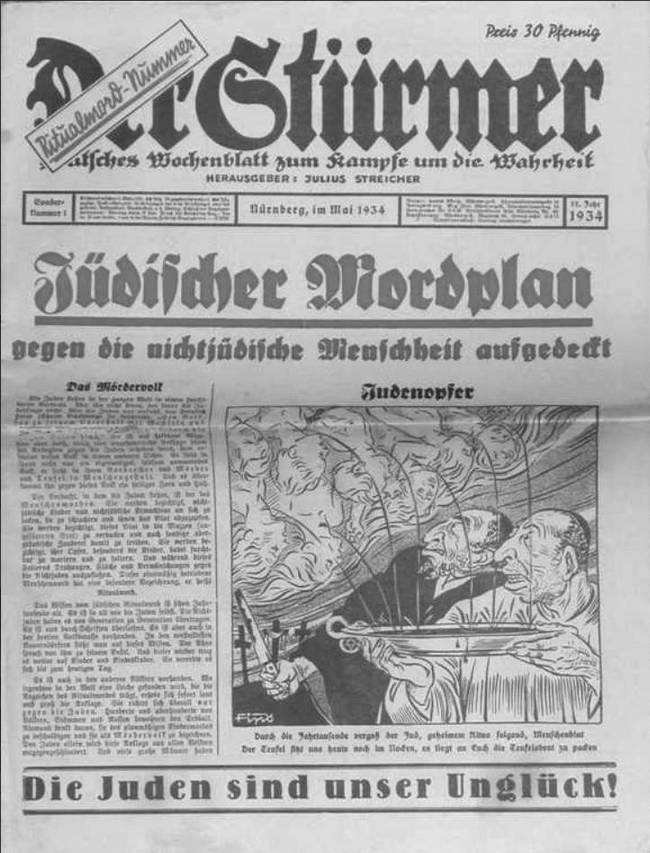Антисемитская газета «Der Stürmer», девизом которой является: «Евреи – наше бедствие!».