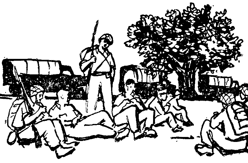 Уже в сумерках мы добрались до передовой линии фронта. Она пролегала по дну глубокого скалистого оврага, который разделял здесь две страны. За скалами нашего склона прятались американцы; на той стороне, в густом лесу, виднелись серо-зеленые блиндажи. Американские минометы и пушки, не переставая, обстреливали их. Среди черных деревьев время от времени взвивалось пламя и клубами вставал белый дым. Блиндажи молчали.