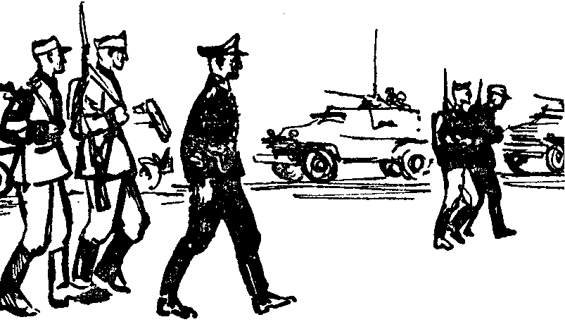 В полевом штабе бригады, обнаруженном нами в одиноком домике в стороне от дороги, офицеры ждали условленного часа. Командир первого батальона смотрел на часы. Когда время, наконец, пришло, он сунул в карман лежавший рядом пистолет и просто сказал: «Ну, что же, начали?» Никто не отозвался. Подполковник вышел на улицу, за ним двинулись другие офицеры. Солдаты грузились в «буйволов», танки и «буйволы» снова заревели, сотрясая землю. За «буйволами» тронулись десантники с рюкзаками, за ними два бульдозера,[26]26