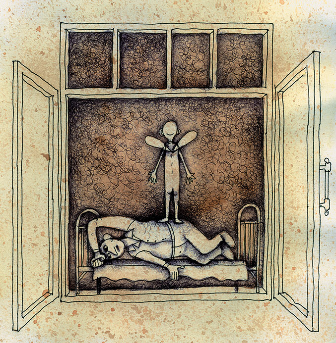 Когда сон бежит от человека, и человек лежит на кровати, глупо вытянув ноги, а рядом на столике тикают часы, и сон бежит от часов, тогда человеку кажется, что перед ним распахивается огромное черное окно, и в это окно должна вылететь его тонкая, серенькая, человеческая душа, а безжизненное тело останется лежать на кровати, глупо вытянув ноги, и часы прозвенят своим тихим звоном: «вот еще один человек уснул», и в этот миг захлопнется огромное и совершенно черное окно.