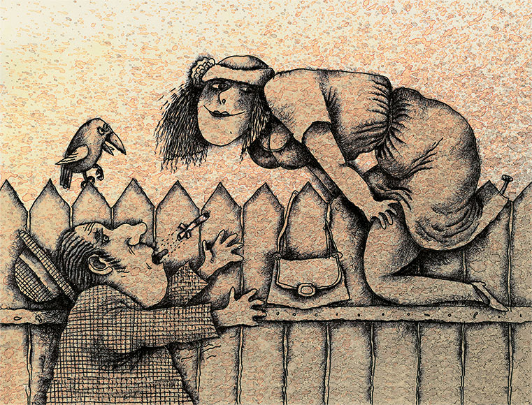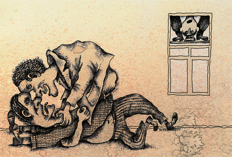 Дворнику объяснили, что в четвертом этаже, в том вон окне, один человек задушил другого.