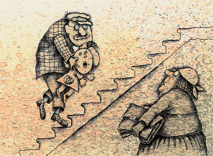 – Девочка, девочка! Пойдемте скорее со мной. Перестаньте плакать. Сейчас мы вас успокоим. Найдем папу, маму и домой приведем, – говорил старичок подталкивая Лидочку к дому. Руки у старичка дрожали. Старичок хватал Лидочку то за головку, то за плечо, то прямо за подбородок. От старичка пахло одеколоном и корытом в котором моют грязное белье. Старичок семенил ножками и, все подталкивая Лидочку, очутился с ней в подъезде дома.
