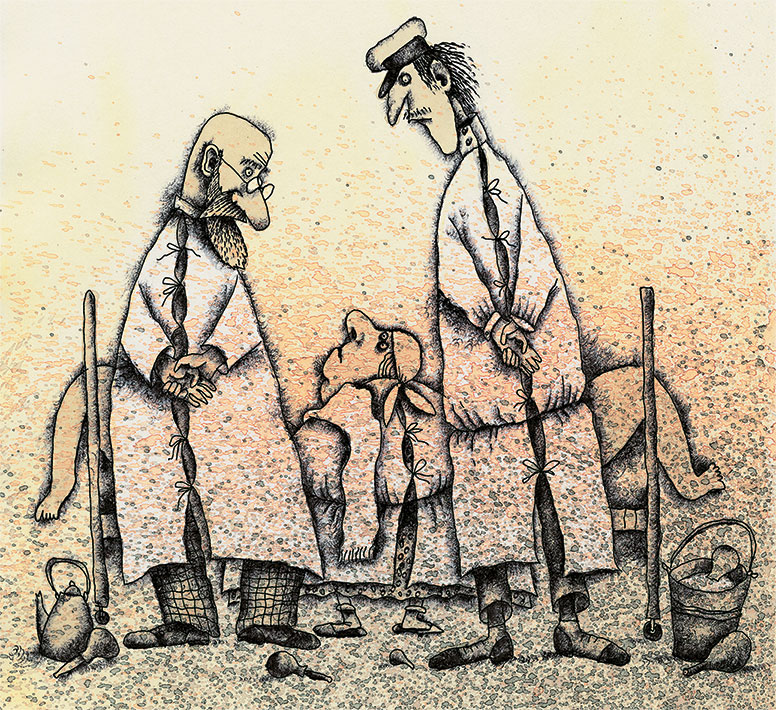– Послушай-ка, брат. У меня не хватает на сахар четырех рублей, а из очереди уходить обидно. Одолжи-ка мне пятерку, и мы с тобой потом рассчитаемся.