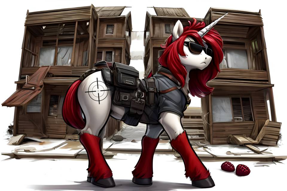 Земнопони осторожно выпустила карабин изо рта и свистнула – сначала один раз резко и высоко, потом чуть ниже и протяжнее, с подъёмом в конце. Для группы это был сигнал, что она кого-то обнаружила, но стрелять пока рано. Да и паниковать тоже. Вместо этого нужно без спешки во всём разобраться.