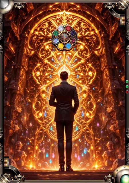 Я зашел в Клятвенный Зал, и дверь за мной бесшумно закрылась. Вся противоположная входу стена представляла собой инкрустацию, содержащую сотни драгоценных камней, сопровождаемую вязью рун. Камни сияли собственным светом, озаряя помещение радужными бликами. По центру стены находился герб Драгоценной Империи. С королевским опалом в центре. Камень легко фосфоресцировал, а когда я зашел в помещение, выдал яркую вспышку.