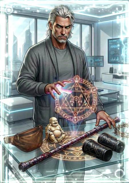 – Дальше – боевой жезл, – продолжил свою лекцию Игорь, указывая на металлический жезл, покрытый темными разводами, похожими на ржавчину, но отливавшими фиолетовым цветом. – «Душитель». Выплавлен из мутировавшего металла, заклинания накладывались в процессе изготовления. При активации выпускает сгусток вязкой, живой дряни, который ищет дыхательные пути жертвы, залепляет их и проникает в легкие, вызывая отек и удушье. Процесс, я так думаю, весьма болезненный. Обычные магические щиты или «доспехи» эта штука проедает. Прилипает к ним и сжирает. Сам жезл сильно фонит, использовать его без должной защиты для оператора опасно. Но, в целом, это самый безобидный предмет из проверенных для пользователя. Для тебя лично почти безопасен. Не знаю, входит ли в каталог запрещенных, сам уточнишь. Это довольно стандартный боевой жезл ордынских колдунов.
