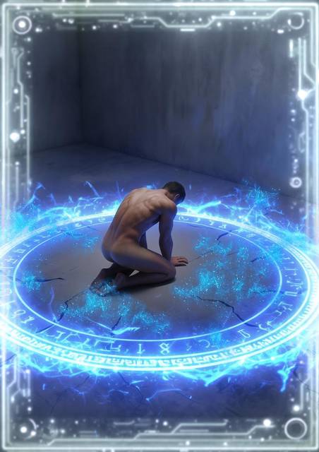 Старик между тем начертил в воздухе сканирующую печать и опустил ее на реципиента. По всему телу на коже засветились различные узоры и руны.