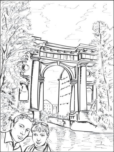 Особенно нас поражает расположенная недалеко «Кухня-руина» – розовато-белый павильон с античными мраморными капителями и намеренно поврежденными барельефами, придающими павильону вид разрушенного памятника древности. Такая имитация была в моде в XVIII веке. Несколько раз в восторге обходим «Кухню», рассматриваем покрытые трещинами стены, обезглавленную статую и крохотного купидона, укрепленного над дверью. Потрясающе!