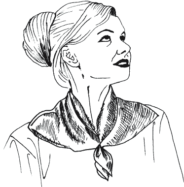 Узел «Кокетка»Данный вариант завязывания подходит для платков из тонкой, но при этом хорошо держащей форму складок ткани. Узел прекрасно смотрится и с декольте, и с вырезом под горло. Он подойдет и юным девушкам, и дамам в возрасте, желающим скрыть шею.