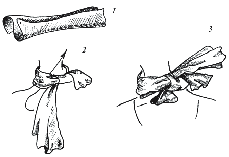 1. Сверните каждый платок в жгут и переплетите их между собой.