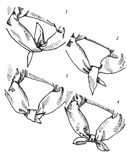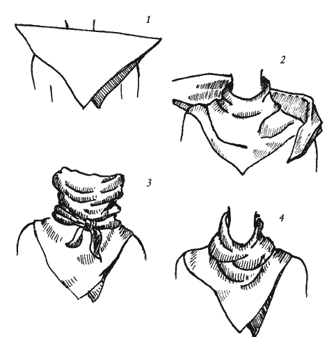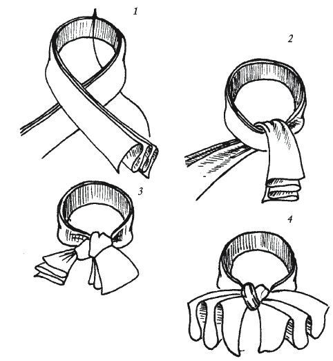 Узел «Задорный»Данный способ прекрасно подходит для завязывания небольших шейных платков из легких тканей и косынок.