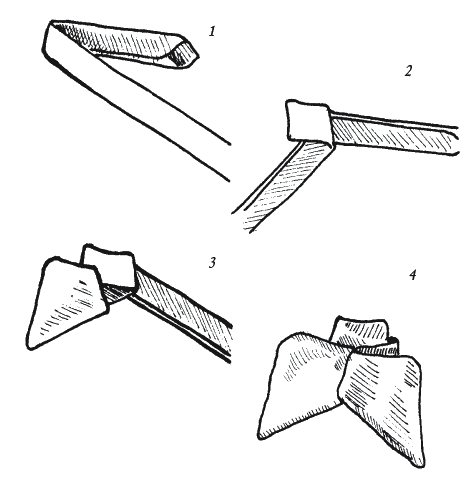 2. Верхний конец опустите вниз, нижний заведите поверх него.