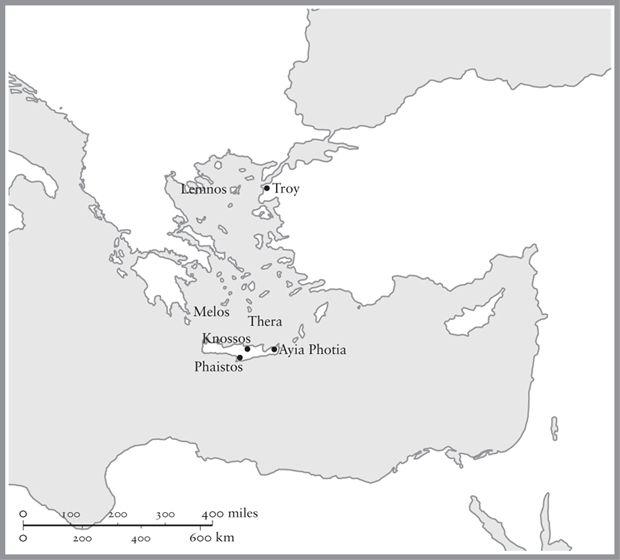 Один товар завоевывал престиж, буквально укрепляя руки тех, кто осуществлял политическую власть: бронза; именно спрос на этот сплав создал сеть связей по всему Эгейскому морю, соединив Трою с островами. Блестящие сосуды и постаменты из бронзы или меди свидетельствовали о богатстве и престиже их владельцев, но именно бронзовое оружие гарантировало безопасность от врагов. Те, кто владел этими предметами, несомненно, были успешными военачальниками. Медь можно было найти на острове Кифнос в западной части Киклад или в Аттике на материковой части Греции. Ранние металлурги научились укреплять относительно мягкий металл медью, сплавляя ее с оловом. Сведение воедино ингредиентов бронзы и создание системы обмена означало, что сеть связей по всему Эгейскому морю превратилась в то, что наконец-то можно назвать торговыми путями: связи, устанавливаемые регулярно в зависимости от времени года, от года к году, с целью обмена, в которых посредники путешествовали на лодках, хотя было бы слишком далеко заходить, если бы предположить, что они были профессиональными купцами, живущими исключительно за счет доходов от торговли. В результате Средиземноморье оживало, его пересекали люди самого разного происхождения в поисках или желая избавиться от товаров, которые имели столь же разное происхождение.