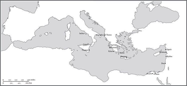 Гораздо более значимыми для микенских торговцев, чем неосвоенный запад, были побережья нынешних Сирии и Ливана.16 К XIV веку торговцы оставили большое количество микенских горшков (в стиле, известном как «позднеэлладский II») в Угарите и Библосе в Сирии, а также на побережье Ханаана в Гезере и Лахише. Зарождалась левантийская торговая сеть, достаточно оживленная, чтобы поддерживать богатые города, в которых эгейские купцы смешивались с ханаанеями, киприотами, хеттами, египтянами и другими жителями и гостями.17 Левантийские порты имели еще более древние связи с дельтой Нила; в гробнице Кенамуна в египетских Фивах, которая уже не сохранилась, есть настенная роспись, на которой изображена разгрузка товаров в египетском порту под надзором ханаанских купцов, среди которых были текстиль, пурпурная краска (специальность левантийского побережья, изготавливаемая из моллюска мурекса), масло, вино и скот.