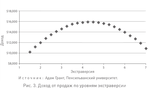 «Эти результаты ставят под сомнение укоренившееся мнение, что наиболее эффективными продавцами являются экстраверты», – пишет Грант{76}76