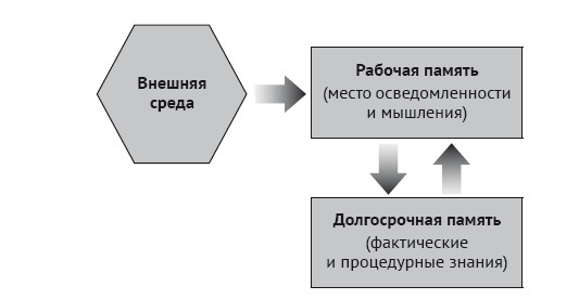 Итак, успешное мышление зависит от четырех факторов: от информации из внешней среды; от фактов, которые хранятся в долгосрочной памяти; от процедур, которые мы можем извлечь из долгосрочной памяти; наконец, от доступного объема рабочей памяти. Если хотя бы один из них неадекватен задаче, умственная деятельность, скорее всего, потерпит неудачу.