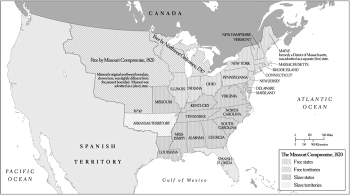 [Закрыть] Ограничение распространения рабства на Запад грозило навсегда отнять этот прибыльный рынок. Миссури не был хлопководческим регионом, но районы, экспортирующие рабов, такие как Вирджиния и Южная Каролина, с ужасом отреагировали на то, что выглядело как плохой прецедент.