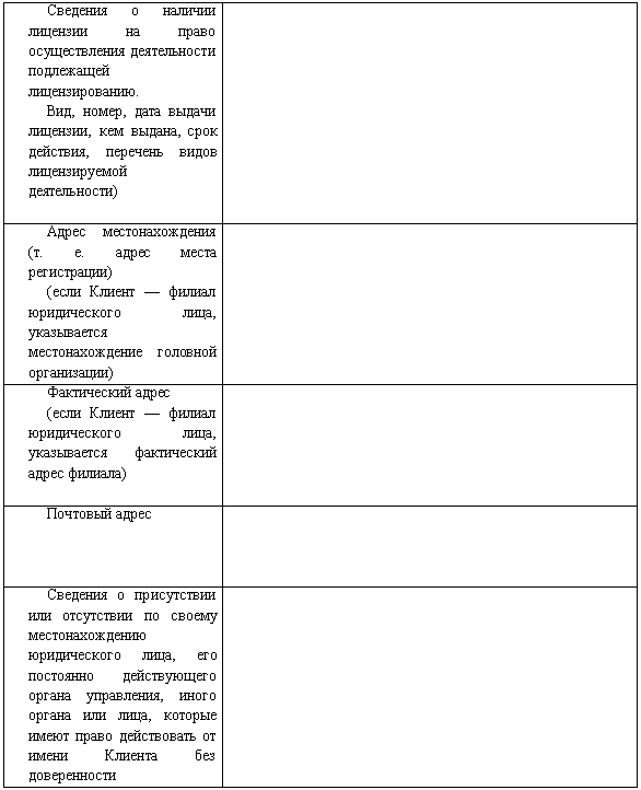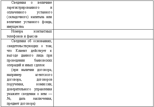 Примечание. Приложение 2 заполняется при наличии у Клиента выгодоприобретателей – юридических лиц. При изменении каких-либо сведений, указанных в Приложении 2, в БАНК (ОАО) представляется заполненное Приложение 2 с новыми сведениями.