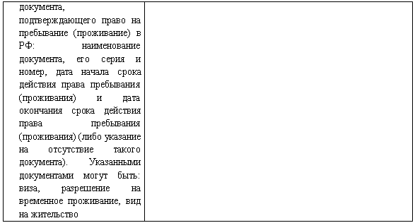 8. Документ, подтверждающий право иностранного гражданина (лица без гражданства) на проживание (пребывание) в РФ (виза, разрешение на временное проживание или вид на жительство).[Если международным договором предусмотрен безвизовый режим, то Клиент может не иметь документа, подтверждающего право иностранного гражданина (лица без гражданства) на проживание (пребывание) в РФ.]