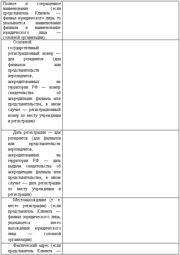Примечание. Приложение 1 заполняется при наличии у Клиента представителей – юридических лиц. При изменении каких-либо сведений, указанных в Приложении, в БАНК (ОАО) представляется заполненное Приложение 1 с новыми сведениями.
