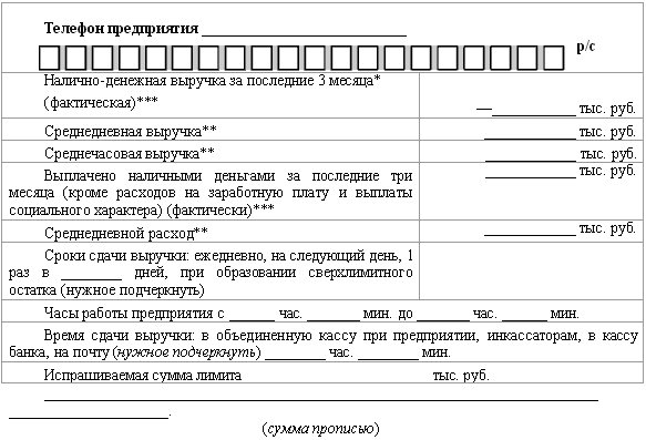 на установление предприятию лимита остатка кассы и оформление разрешения на расходование наличных денег из выручки, поступающей в кассу, на ___________ год