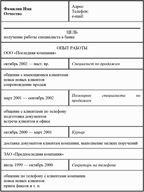 Образец резюме: