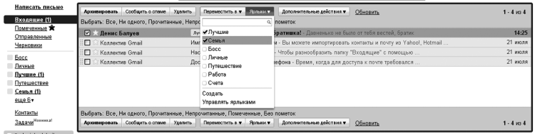 Рисунок 1.11. Лучшие письма от большой семьи. Два ярлыка у одного письма одновременно