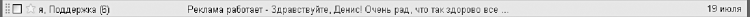 Рисунок 1.13. На фотографии слева направо: флажок отметки, звездочка, участники переписки, число писем (в скобках), тема письма, фрагмент текста и дата последнего сообщения
